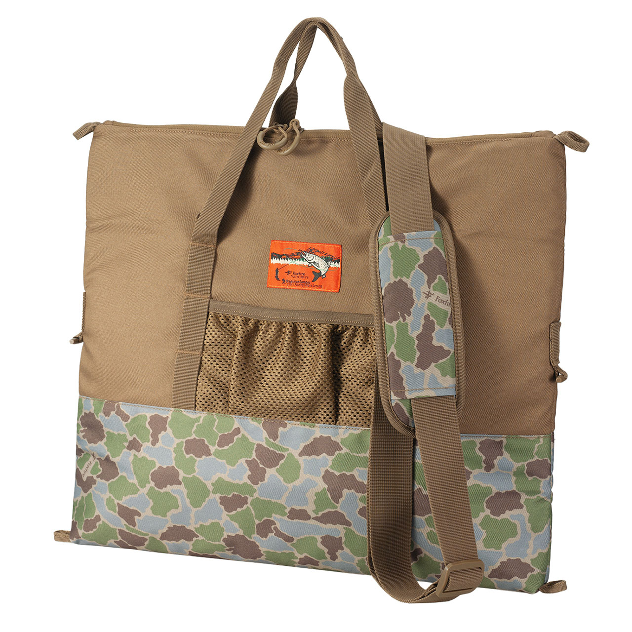 オレゴニアンキャンパーとのコラボレーションアイテム。Foxfireオリジナルのフィッシュアイカモフラージュ柄をプリントしたユニークな3WAYソフトクーラーバッグです。フラットなトートスタイル(2Lのペットボトル4本収納)、自立するバッグスタイル、キューブスタイル(500mlのペットボトル6本収納)と収納物に応じた3つの形状に変形可能。ハードクーラーのサブクーラーとして使いやすいサイズと機能です。