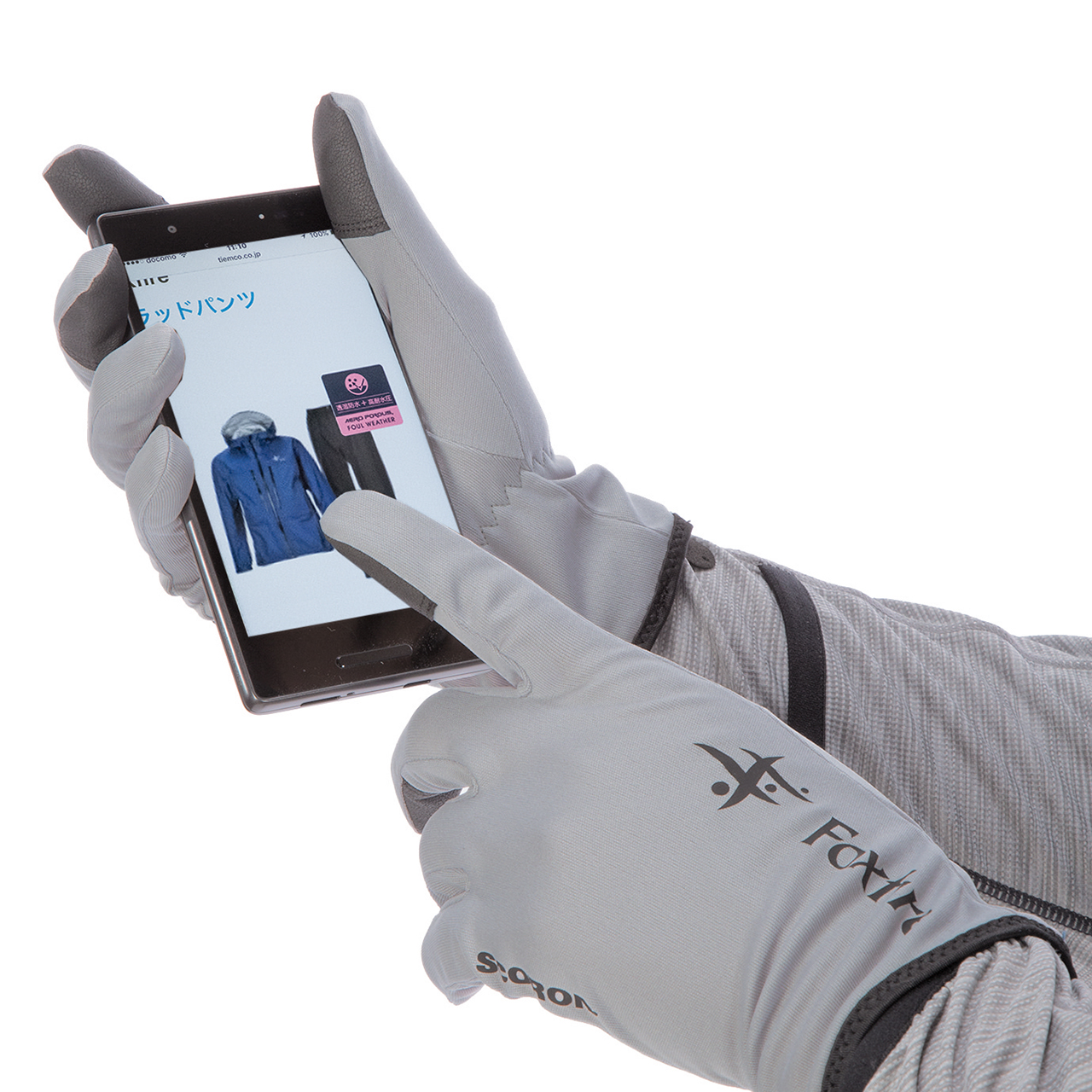 防虫、吸汗速乾、UVカット機能を持つトランスウェット・スコーロン素材を採用。長めのカフスで手首部もしっかりとガードします。親指、人差し指、中指は、グローブを装着したままタッチスクリーンの操作が可能。