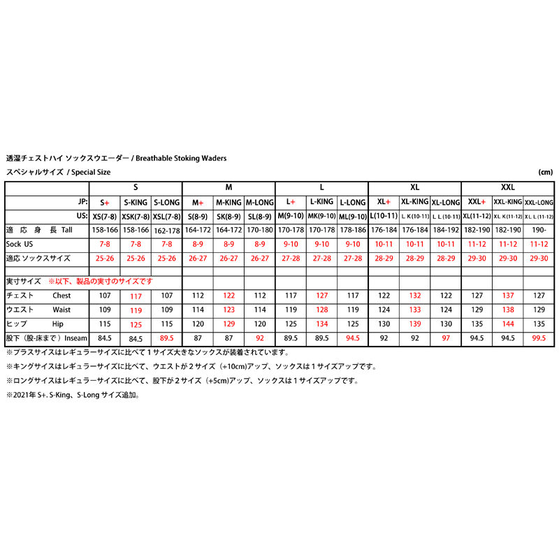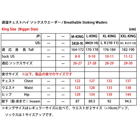 King(キング)サイズは、恰幅の良い方用。レギュラーサイズに比べてウエストがツーサイズ大きく(+10cm)、ソックスがワンサイズ大きくなっています。