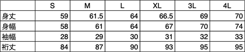 サイズ:S,M,L,XL,3L,4L