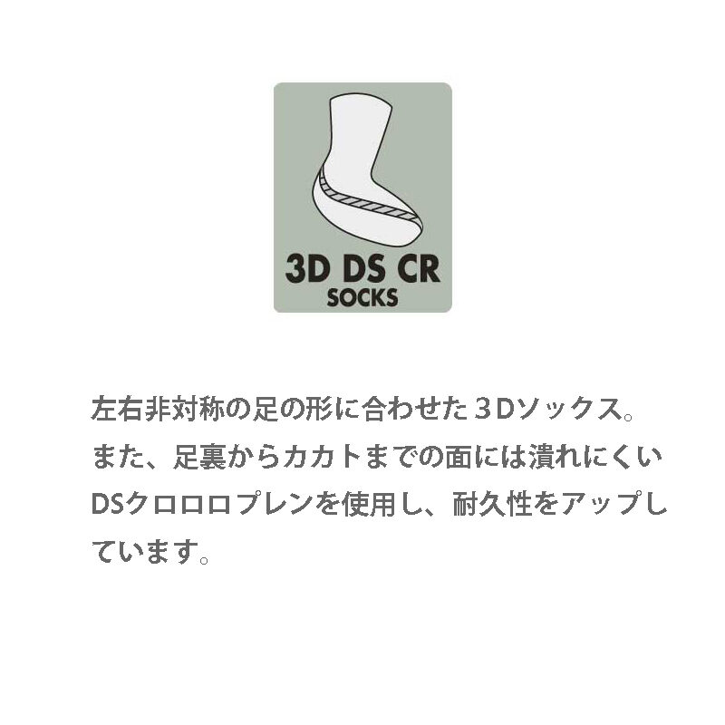 ・左右非対称の3Dソックスには耐久性にすぐれたDSクロロプレンを採用。