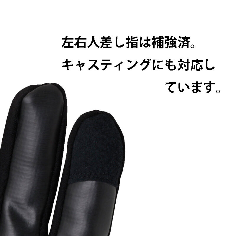 ・手の平部分にUG超グリップ素材を採用、また両手の指先の補強によりキャスティングにも対応しています。