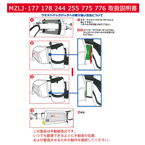 マズメウエストバッグには、このインフレータブルライフジャケットを装着可能なように、ベルクロを配備しています。ウエストバッグと一緒にする事により装着時にコンパクトに装着頂けます。