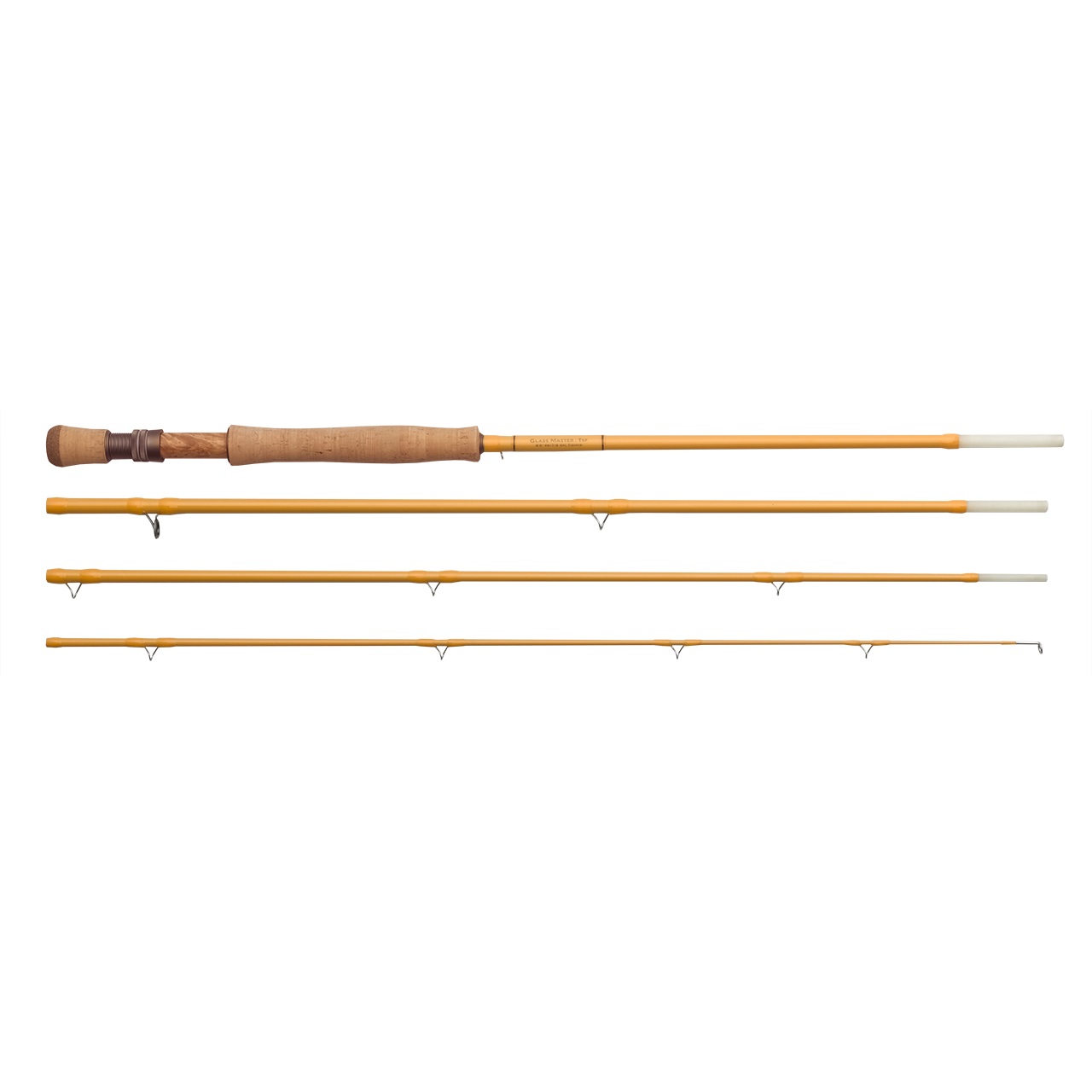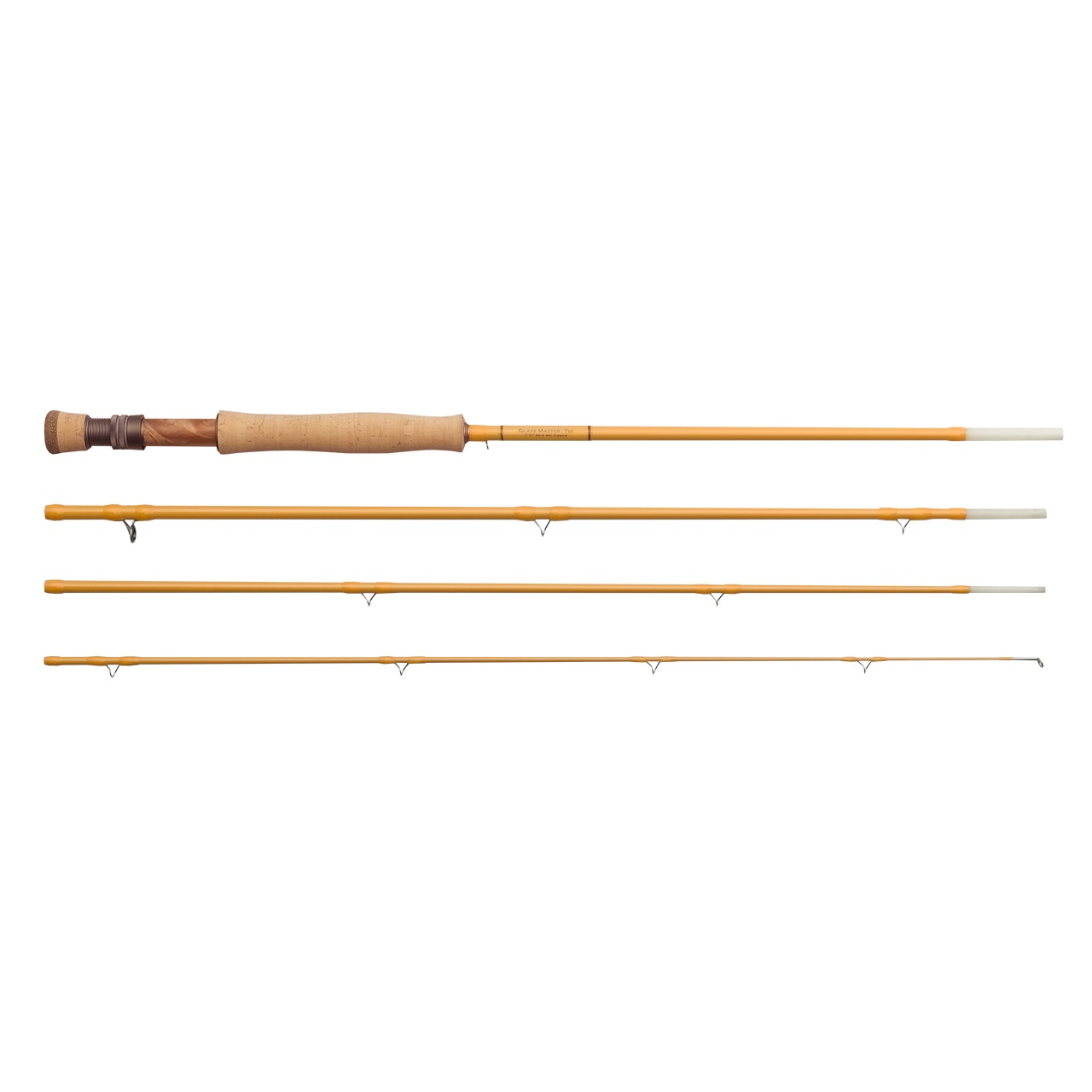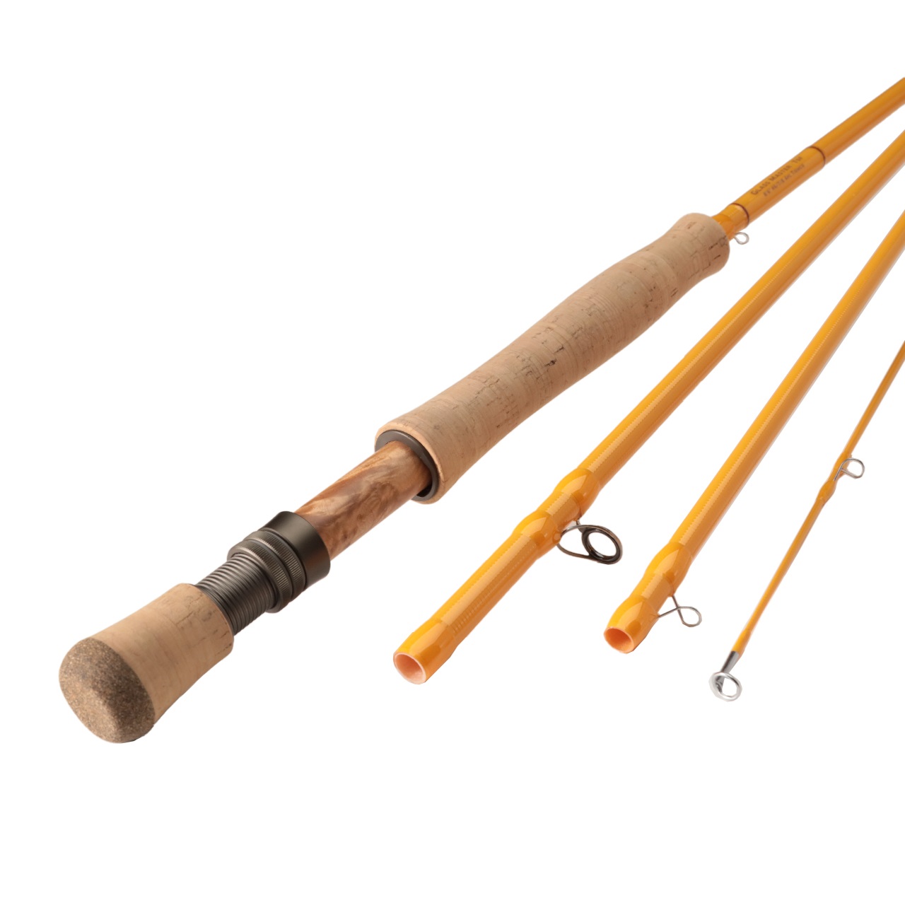 例えば渚滑川のマッチザハッチのニジマスの釣りで魚が大きいにも関わらず細いティペットが求められるシチュエーションでも、合わせ切れが少なく、またニジマス特有のダッシュでもラインブレイクが少ないのがこのモデルです。もちろん大型ドライフライの釣り上がりにもお勧めで、しなやかなグラスブランクは近距離、中距離のラインコントロール性が高く、さらにはバックスペースが無いところでもロールキャストがしやすいという高い汎用性を示します。低番手でありながらファイティングバット付きなのは大型魚を数多く釣りあげてきた杉坂隆久氏のこだわりです。お勧めのフライラインはスタンダードなウエイトフォワードラインで、小型のフライなら#4、バルキーな大型ドライフライなら#5をお選びください。