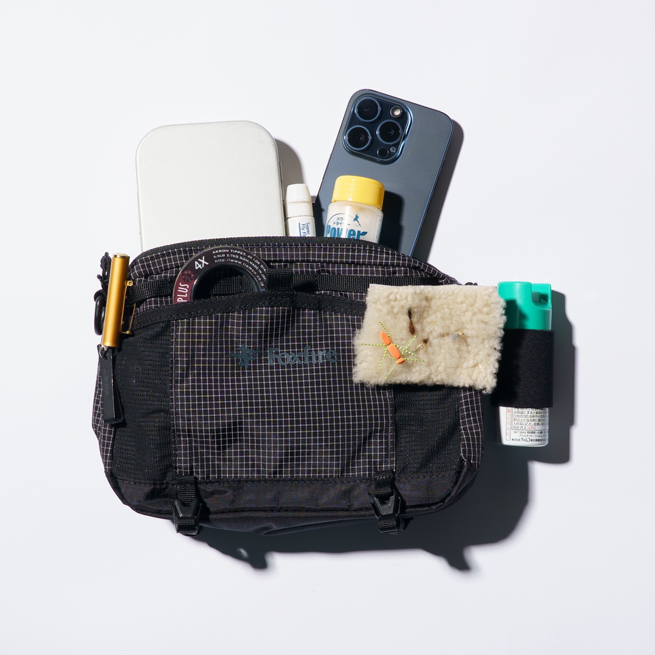 ポーチ内外にフィッシング小物の整理収納に最適なオーガナイザーポケットやウェービングベルトが配され、ストレスなくアイテムにアクセスできます。