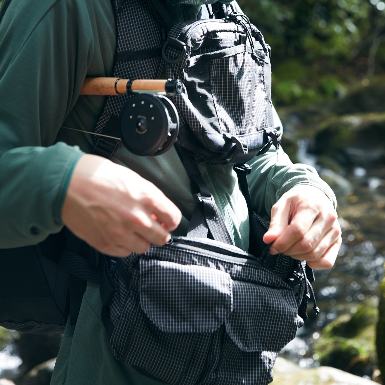 軽量で強靭なスペクトラファイバーのリップストップ生地を採用したULチェストパック。