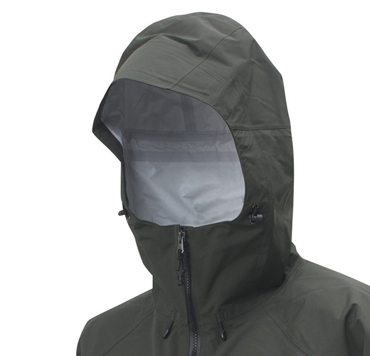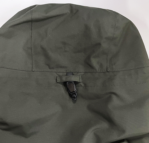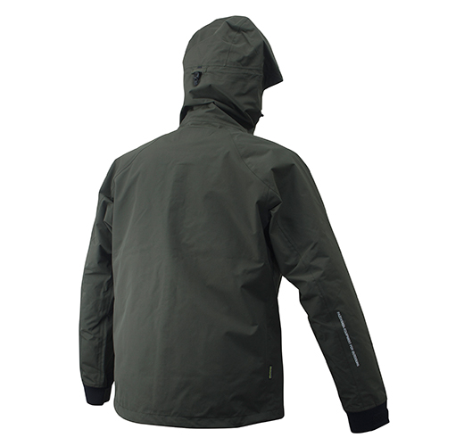 「磯や源流釣行などでヘルメット着用時も突っ張らず、左右の視界も確保出来て、かつ雨が入りにくいフード」という実釣に基づいたアングラーの要望に対応した仕様となっています。