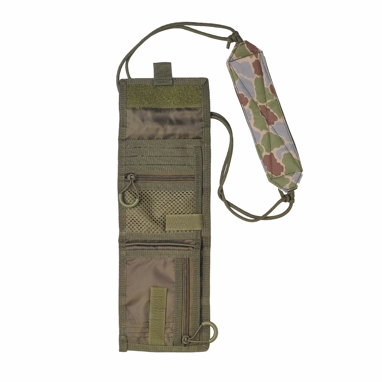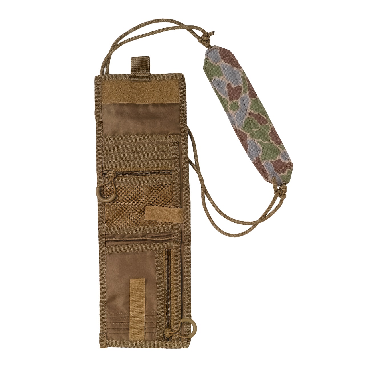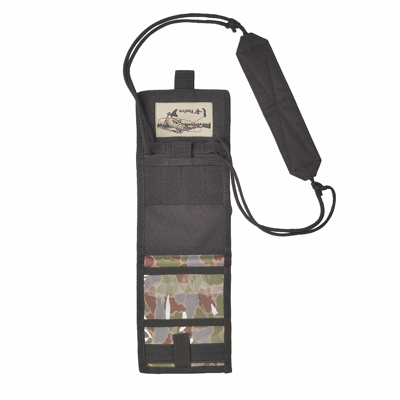 Foxfireオリジナルのフィッシュアイカモフラージュ柄をプリントした首掛けウォレット。